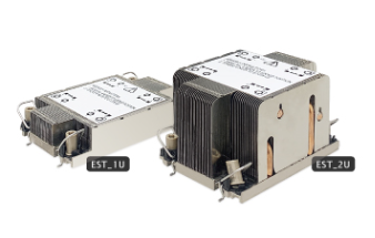 ● EST_1U, customized design for 1U server, adopting highly thermal conductivity materials: copper + aluminum base that combines with high-density fin and unique heat pipes. It supports up to 205 Watts CPU power heat dissipation.