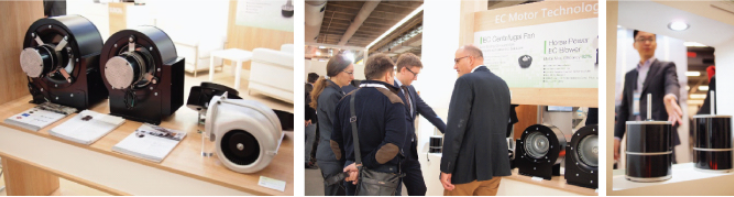 展出运用于冷冻冷藏设备的超节能EC风扇,该款风扇并提供有防爆认证的选择。同一个展区还展出厨房抽油烟机EC鼓风扇、HVAC EC马达等各种高效能、高节能风扇和马达产品也同步亮相。