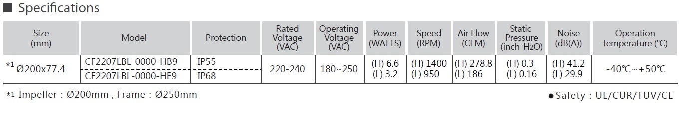 型號:CF2207LBL-0000-HB9 / CF2207LBL-0000-HE9