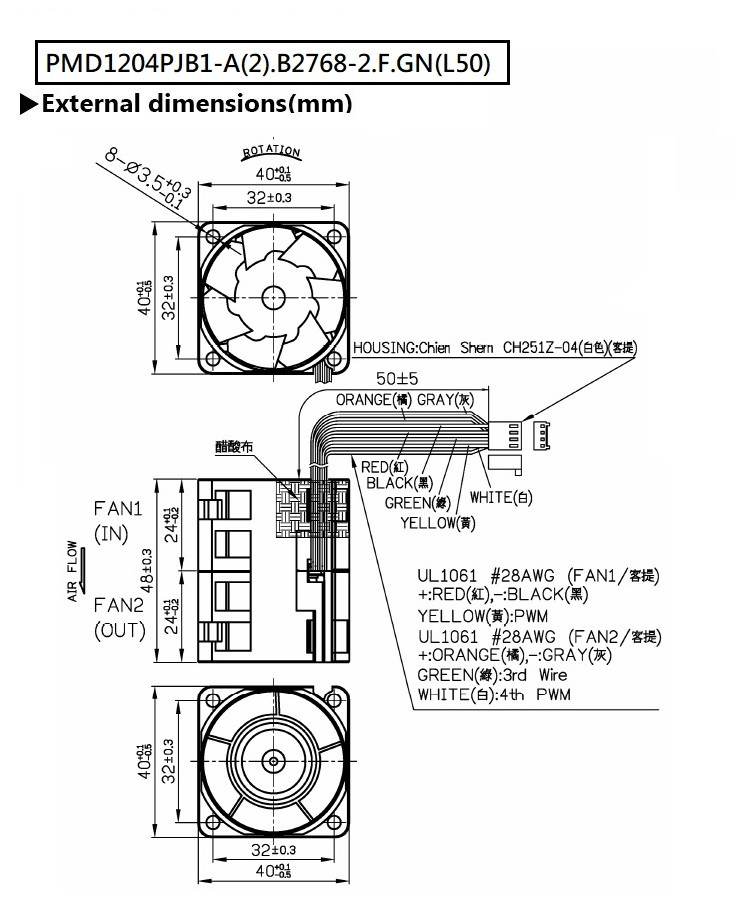 Rated Voltage:12 VDCRated Current:1000 mARated Power :12 WATTSRated Speed:15000RPM_14000 RPM ± 10%Acoustic Noise:61.3 dB(A)Air Flow:26.5 CFM