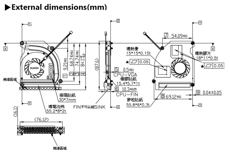 Fan Rating Voltage:5 VDCFan Rating Current(with Heat Sink):230 mAFan Power Consumption(with Heat Sink):1.15 WATTSFan Speed(with Heat Sink):5200RPMCooling Module Noise:37.4 dB(A) @ 0.5MFan AirFlow(with Heat Sink):2.8 CFM