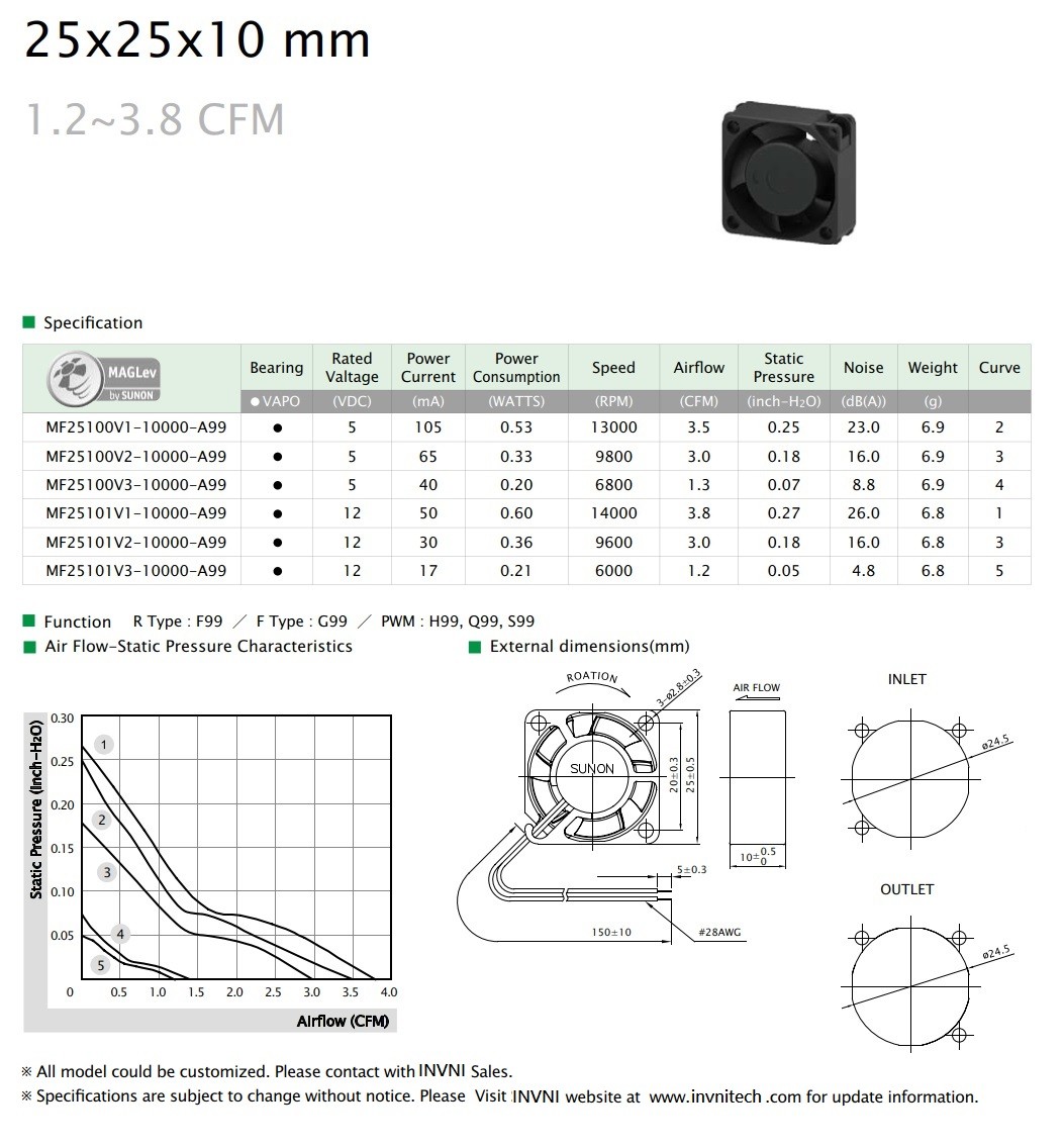 Sunon累积数十年来持续不懈专注于马达核心技术与微型风扇的发明创新,提供17mm~120mm全系列DC Fan & Blower,创造最具效益的散热解决方案。本系列产品符合RoHS规范,并通过各项质量管理系统认证,亦取得UL、TUV…等多项验证。