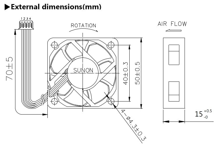 Rated Voltage:12 VDCRated Current(AVG.):0.018 A/Max.0.024 ARated Power(AVG.):0.22 W/Max.0.29 WRated Speed:3200RPM ± 15%Acoustic Noise(AVG.):Nominal 15.4 dB(A)AirFlow at zero static pressure:Nominal 7.7 CFM