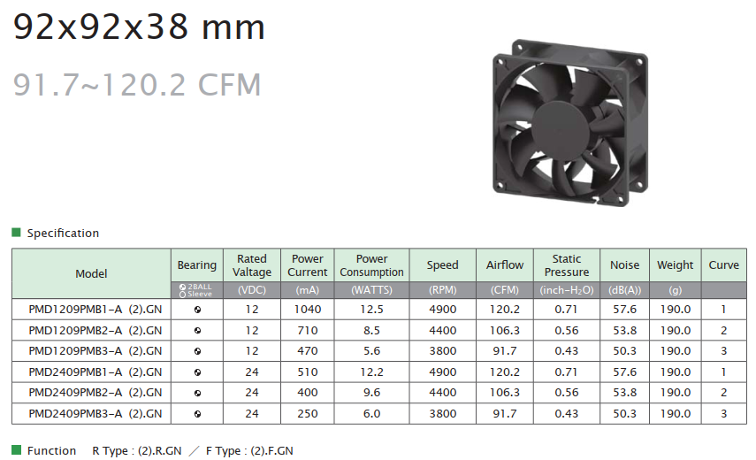 92mm Series92x92x38 mm