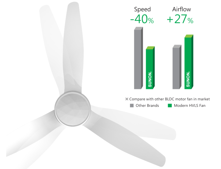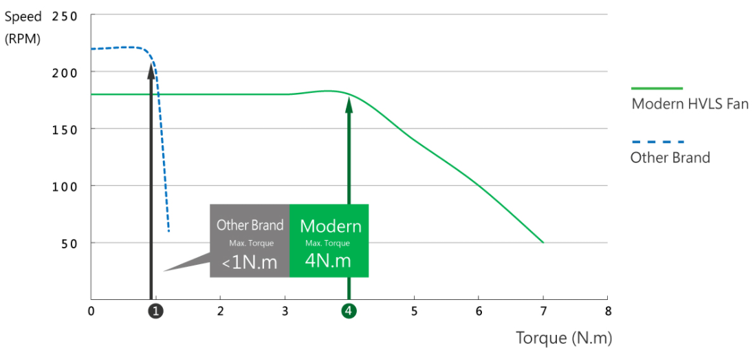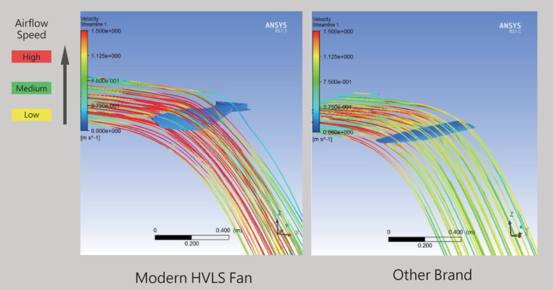 Modern HVLS Fan 40% Lower Speed Than Other Conventional Fans And Outcompete The Others. Run Slower for Longer Life , Lower Noise, and More Comfortable.