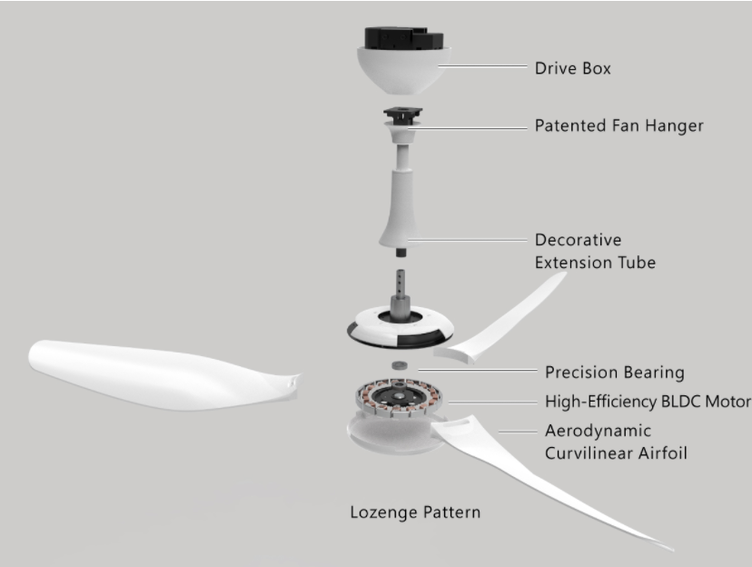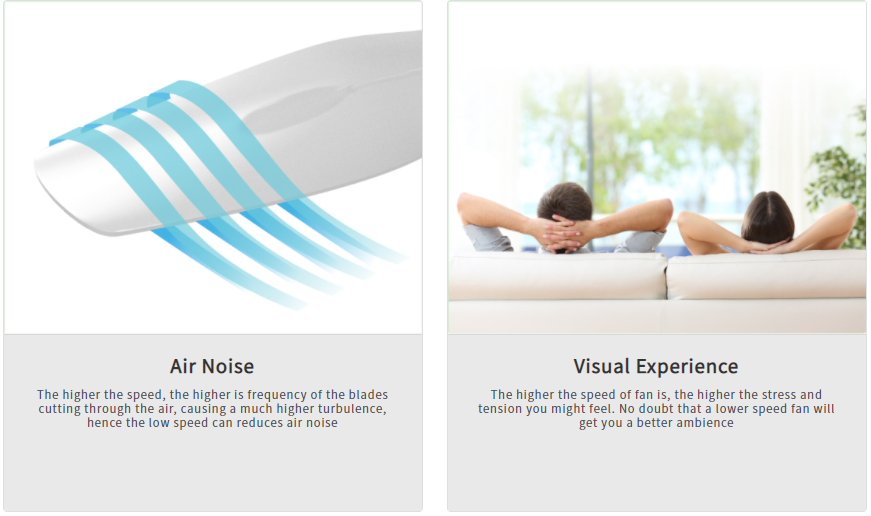 The ultra-high torque motor can generate massive air at low speed by the curvilinear airfoil,creating a relaxing and peaceful atmosphere in your house.