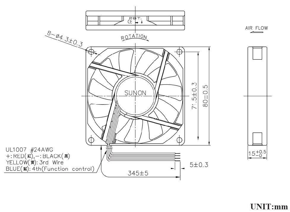 Operating Voltage : 12~28 VDC Rated Voltage : 24 VDC Rated Current : 210 mA Power Consumption : 5.04 Watts Rated Speed : 4500RPM Air Flow : 55.5 CFM