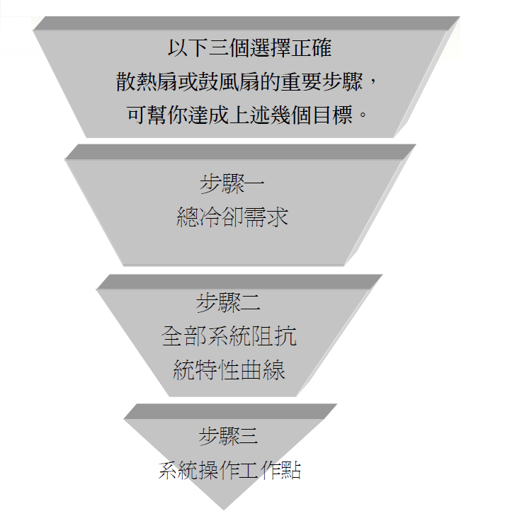 ●根據目錄的特性曲線或規格書來選擇所需的風扇。