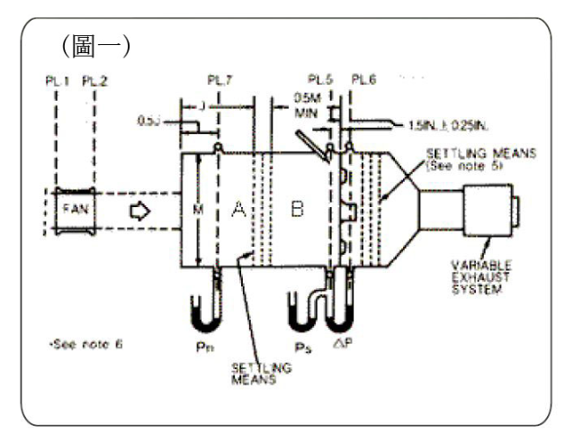 以下所顯示的風量和靜壓特性規格是採用雙箱方式來測量,在此我們將解釋何謂雙箱方式(圖一)。可變排氣系統(variable exhaust system)由出空氣來調整空氣密度,瞬間打開噴嘴將造成靜壓與風量的瞬間變化,然後讀取每個靜壓計上的壓力讀數。