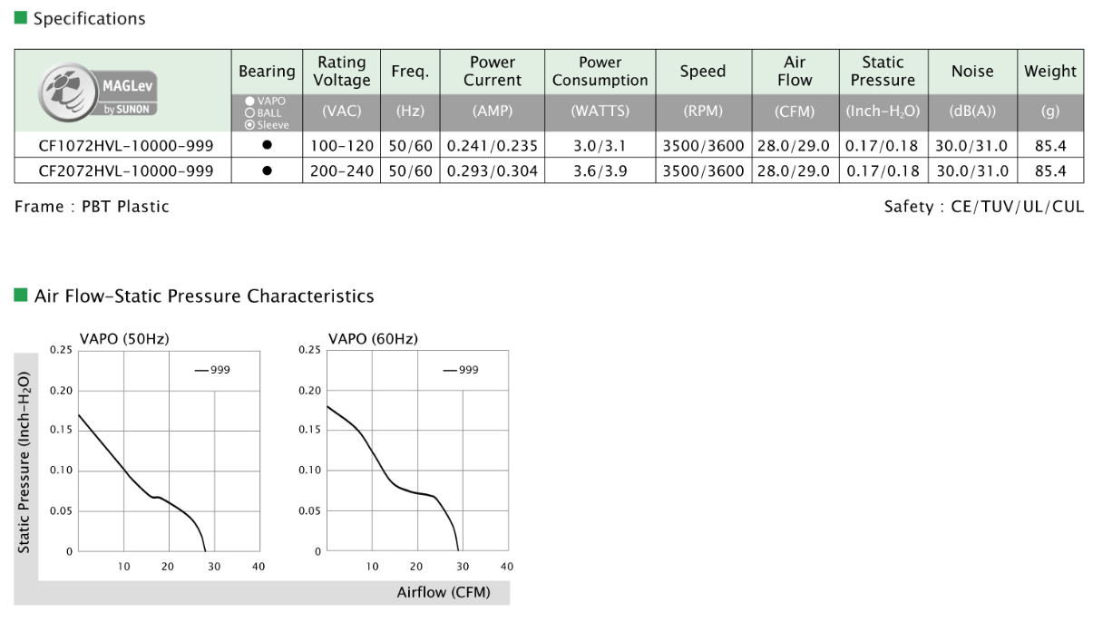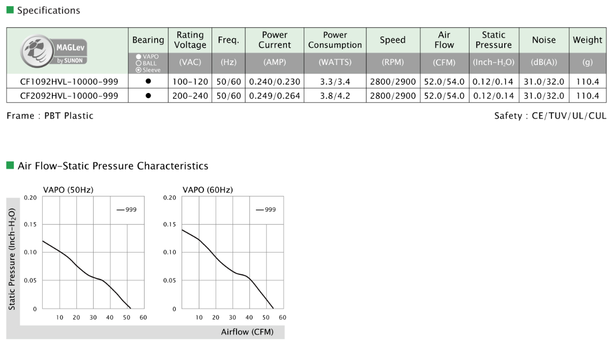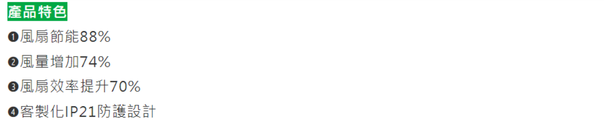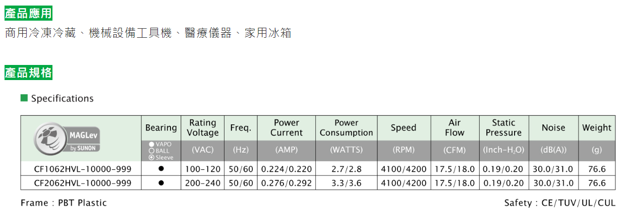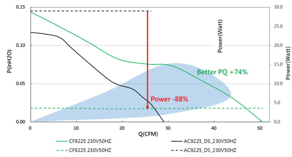 新世代MagLev EC軸流散熱風扇CF系列4尺寸:60x60x25、70x70x25、80x80x25、92x92x25,小型化設計可直接應用於交流電源輸入環境,EC風扇能源轉換效率更高,比AC風扇省電88%以上。同時,新世代MagLev EC軸流散熱風扇集結2大優勢:MagLev馬達技術和風扇扇葉的優化設計,風量更集中且更低噪音的特性散熱效果更好,另可依客戶系統使用需求客製化提供IP21防護設計,非常適合使用於能效不斷提升的商用冷凍冷藏、家電、醫療設備和機械設備系統散熱。