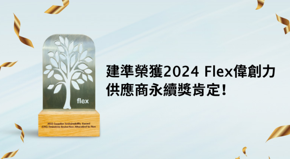 Flex 為全球長期專注於履行永續發展承諾的重要企業之一,為了加速整個價值鏈的永續發展,積極邀請供應商參與成為Flex永續發展策略的一部分;建準作為Flex長期合作夥伴,踴躍參與且全力配合供應鏈碳盤查活動,持續減少碳排獲得Flex肯定,故頒發給建準溫室氣體減排類「供應商永續獎」的榮譽。