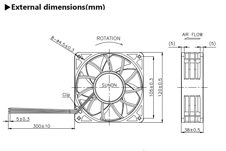 Rated Voltage:12 VDCRated Current(AVG.):2.700 A/MAX. 3.105 ARated Power(AVG.):32.4 W/MAX. 37.26 WRated Speed:6000RPM ± 10%Acoustic Noise(AVG.):63.5 dB(A)/MAX. 68.6dB(A)MAX AIRFLOW AT ZERO STATIC PRESSURE:232.3 CFM/MIN. 205.3 CFM