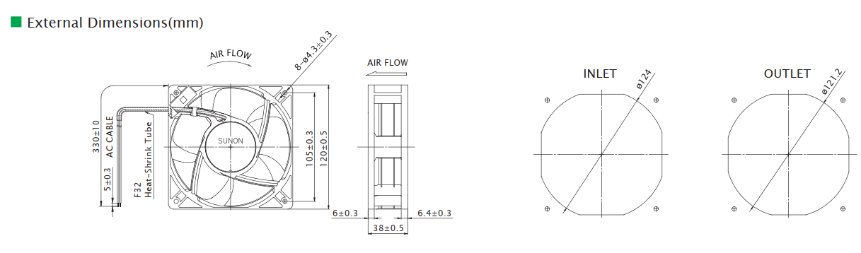 120mm Series120x120x38 mm