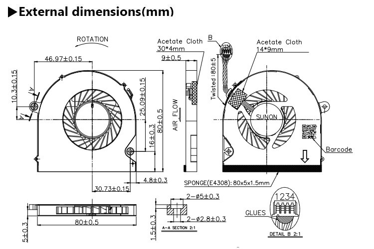 AIRFLOW AT ZERO STATIC PRESSURE:NOMINAL 8.2 / MIN. 7.0 CFM