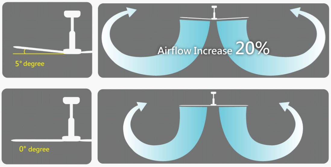 Powerful HVLS Fan airfoils are raised by 5 degrees, which can cover 20% more area than the regular 0-degree airfoils. Due to aerodynamic optimization, it is easier to have a more comfortable and even natural wind.