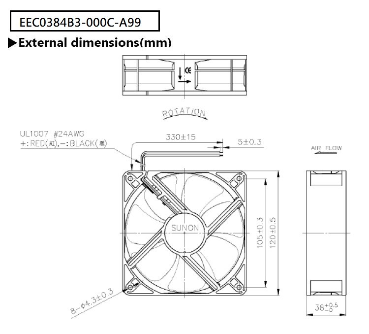 Air Flow:NOMINAL 238.0 / MIN. 208.9 CFM
