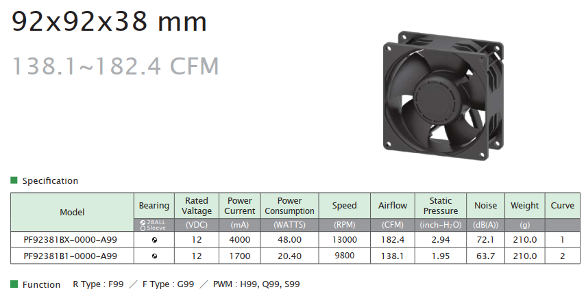 92mm Series92x92x38 mm