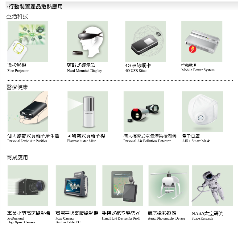SUNON 為行動裝置產品打造量身訂做的散熱解決方案,讓散熱產品具備小型化、薄型化、低功耗、低震動、低噪音、高效能與長壽命等各項特性,迎合行動裝置產品輕、薄、小與長效電池續航力,並兼顧手持式手感與聲音品質要求,讓您的產品更具市場的競爭力。