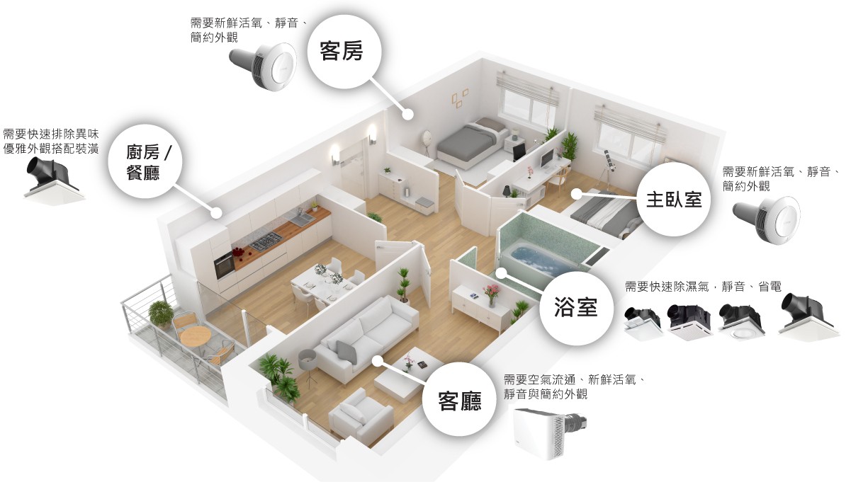 2015年開始,建準針對居家空氣對流提出節能通風對策,打造一系列的DC節能換氣扇、雙流新風機和吊扇等產品,提供現代居家節能通風新選擇,讓家更清新、舒適和健康。